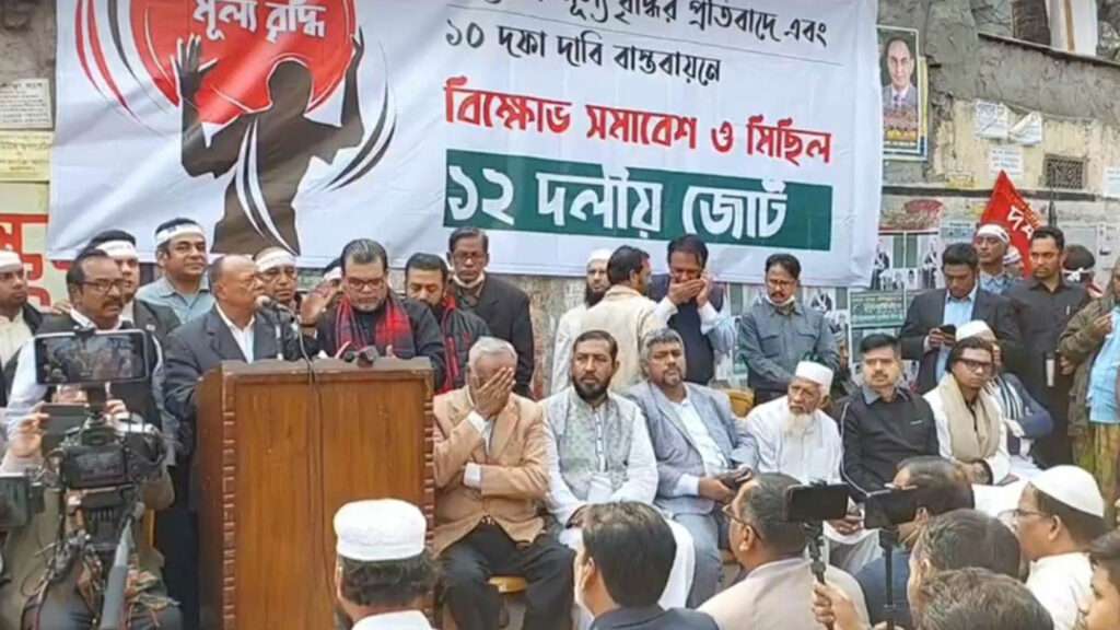 জাতীয় পার্টির (কাজী জাফর) চেয়ারম্যান মোস্তফা জামাল হায়দারের সভাপতিত্বে এবং বাংলাদেশ জাতীয় দলের চেয়ারম্যান অ্যাডভোকেট সৈয়দ এহসানুল হুদার পরিচালনায় সমাবেশে বক্তব্য দেন ১২ দলীয় জোটের মুখপাত্র বাংলাদেশ কল্যাণ পার্টির চেয়ারম্যান মেজর জেনারেল (অব.) সৈয়দ মুহাম্মদ ইবরাহিম বীরপ্রতীক, বাংলাদেশ লেবার পার্টি চেয়ারম্যান মোস্তাফিজুর রহমান ইরান, বাংলাদেশ এলডিপির মহাসচিব শাহাদাত হোসেন সেলিম, এনডিপির চেয়ারম্যান ক্বারী মোহাম্মদ আবু তাহের, জমিয়তে উলামায়ে ইসলাম বাংলাদেশের মহাসচিব গোলাম মহিউদ্দিন ইকরাম, জাগপার সাধারণ সম্পাদক ইকবাল হোসেন, বাংলাদেশ মুসলিম লীগের (বিএমএল) অ্যাডভোকেট শেখ জুলফিকার বুলবুল চৌধুরী, ইসলামী ঐক্য জোটের মহাসচিব মাওলানা আব্দুল করিম ও বাংলাদেশ ইসলামিক পার্টির মহাসচিব আবুল কাসেমসহ জোটের শীর্ষ নেতৃবৃন্দ।