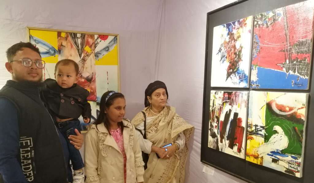 গতকাল বিকেলে তিন বন্ধু রিপন, খোকন ও আজাদ মৃদুপায়ে বেশ আগ্রহ নিয়ে দেখছিলেন এক একটি ছবি। ছবি দেখার ফাঁকে নিজেদের মত করে পরস্পরে ভাববিনিময় করে ছবি আর তার রংয়ের ভাষা বুঝবার চেষ্টা করছিলেন নিজেদের মত করে। প্রদর্শনীর চিত্রকর্ম দেখার অনুভূতি জানতে চাইলে তিনজনইএক বাক্যে বলে উঠেন আমরা মুগ্ধ হয়েছি।