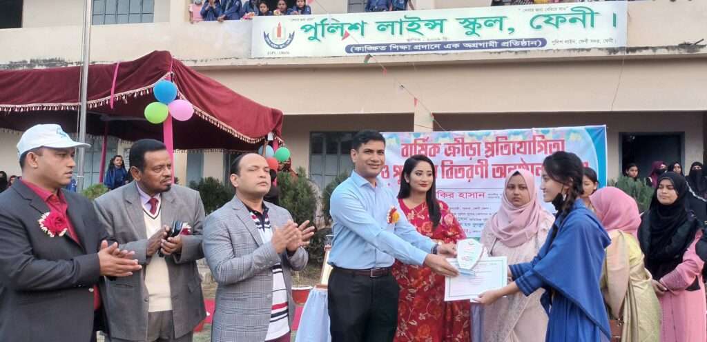 অনুষ্ঠানে অন্যদের মধ্যে ফেনী মডেল থানার ওসি মো: নিজাম উদ্দিন, কোর্ট পুলিশের ওসি গোলাম জিলানী, গোয়েন্দা পুলিশের ওসি সদ্বিপ কুমার দাস, ট্রাফিক ইন্সপেক্টর আনোয়ারুল কবির প্রমুখ অভিভাবকগণ উপস্থিত ছিলেন। স্কুলের খেলাধুলা সহ সার্বিক উন্নয়নের জন্য স্কুলের সভাপতি ও পুলিশ সুপার জাকির হাসানের হাতে ১ লাখ টাকা তুলে দেন আজীবন উপদেষ্টা সদস্য মুক্তিযোদ্ধা এএস শাহুদুল হক বুলবুল। ৩৬টি ইভেন্টে বিজয়ী শিক্ষার্থীদের মাঝে পুরস্কার বিতরণ করেন অতিথিবৃন্দ। এর আগে দুপুরে বেলুন ও পায়রা উড়িয়ে ক্রীড়া প্রতিযোগিতার উদ্বোধন হয়। বিগত বছরে জিপিএ ৫ প্রাপ্ত ৫ শিক্ষার্থীকে সম্মাননা প্রদান করা হয়।