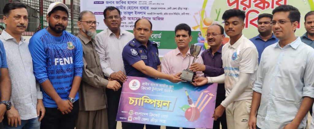 খেলা শেষে পুরস্কার বিতরন অনুষ্ঠানে প্রধান অতিথি ছিলেন জেলা ক্রীড়া সংস্থার সহ-সভাপতি ও অতিরিক্ত জেলা প্রশাসক (সার্বিক) মো: মাসুদুর রহমান। বিশেষ অতিথি র্ছিলেন অতিরিক্ত পুলিশ সুপার দ্বীন মোহাম্মদ, প্রাইম ব্যাংক ফেনী শাখার ব্যবস্থাপক মো: তাজুল ইসলাম, ফেনী জেলা ক্রীড়া সংস্থার সাধারণ সম্পাদ আমির হোসেন বাহার। জেলা ক্রীড়া সংস্থার যুগ্ম-সম্পাদক ও ক্রিকেট উপ-কমিটির আহবায়ক চৌধুরী আহমেদ রিয়াদ আজিজ রাজিবের সভাপতিত্বে ও ক্রিকেট উপ-কমিটির সদস্য শরিফুল ইসলাম অপুর সঞ্চালনায় এসময় অন্যান্যদের মাঝে জেলা ক্রীড়া সংস্থার অতিরিক্ত সাধারণ সম্পাদক জহির উদ্দিন মাহমুদ চৌধুরী মুকুট, ক্রিকেট কোচ রিয়াজ উদ্দিন রবিন।