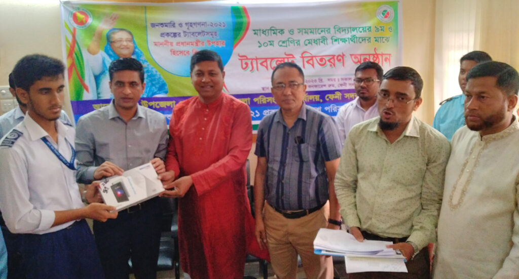 আয়োজক সূত্রে জানা যায়, জনশুমারি ও গৃহগণনা ২০২১ প্রকল্পের ট্যাবলেট সমূহ প্রধানমন্ত্রী শেখ হাসিনার উপহার হিসেবে মেধাবী শিক্ষার্থীদের মাঝে বিনামূল্যে বিতরণের সিদ্ধান্ত নেয়া হয়। সেই আলোকে ফেনী সদর উপজেলার মাধ্যমিক পর্যায়ের শিক্ষা প্রতিষ্ঠানের নবম ও দশম শ্রেণির সমন্বিত মেধা তালিকায় ১ম, ২য় ও ৩য় স্থান অধিকারকারী ৪২৬ জন শিক্ষার্থীর মাঝে উপজেলা পরিসংখ্যান বিভাগের পৃষ্ঠপোষকতায় এ ট্যাবলেট বিতরণ করা হচ্ছে।