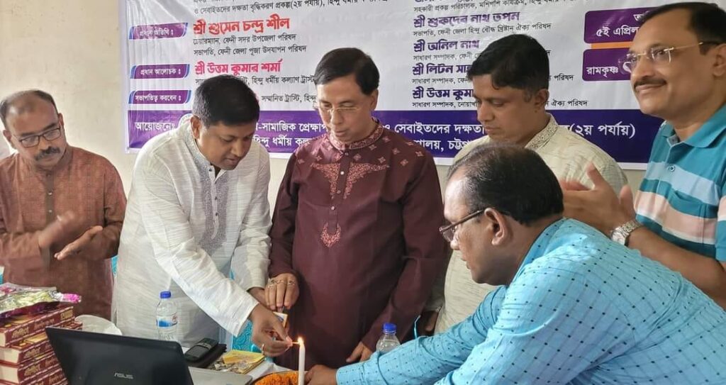 ফেনী রামকৃষ্ণ সেবাশ্রমে হিন্দু ধর্মীয় কল্যাণ ট্রাষ্টের আয়োজিত ৯দিন ব্যাপী সেবায়েত প্রশিক্ষণ কর্মশালা অনুষ্ঠিত হয়েছে। কল্যাণ ট্রাষ্ট চট্টগ্রাম বিভাগীয় ট্রাস্টি এডভোকেট পাপ্পু সাহার সভাপতিত্বে প্রধান অতিথি ছিলেন সদর উপজেলা পরিষদ চেয়ারম্যান ও জেলা পূজা উদযাপন পরিষদ সভাপতি শুসেন চন্দ্র শীল।