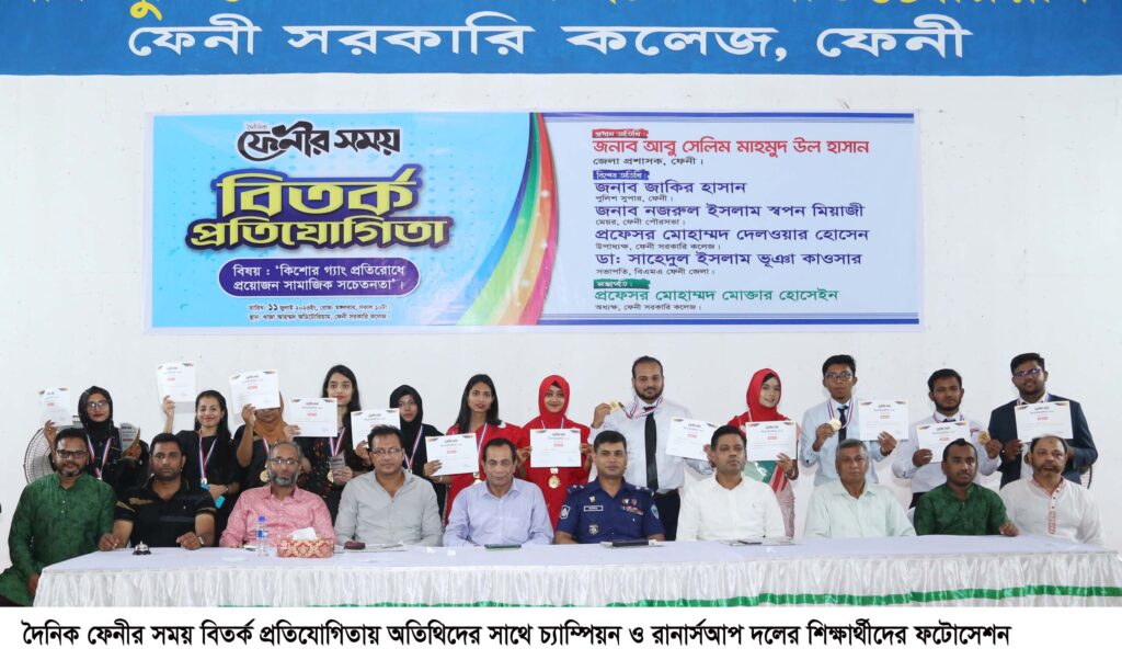 বিশেষ অতিথি ছিলেন ফেনী পৌরসভার মেয়র নজরুল ইসলাম স্বপন মিয়াজী। কলেজের অধ্যক্ষ প্রফেসর মোহাম্মদ মোক্তার হোসেইনের সভাপতিত্বে স্বাগত বক্তব্য রাখেন দৈনিক ফেনীর সময় সম্পাদক মোহাম্মদ শাহাদাত হোসেন।