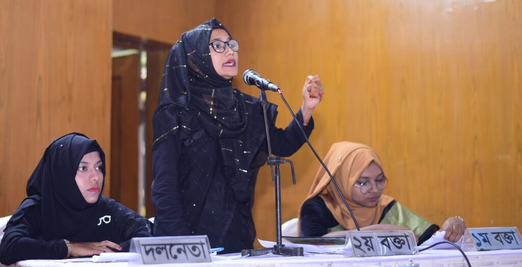 শুরুতে ব্যতিক্রমী আয়োজন। গতানুগতিক উদ্বোধনী পর্ব নেই। পবিত্র কোরআন তেলাওয়াতের মধ্য দিয়ে শুরু। এরপর শিক্ষার্থীদের পরিবেশনায় জাতীয় সংগীত। মুগ্ধতার রেশ না কাটতেই শুরু হলো যুক্তির লড়াই। ‘কিশোর গ্যাং প্রতিরোধে প্রয়োজন সামাজিক সচেতনতা’ বিষয়ের পক্ষে-বিপক্ষে যুক্তি তুলে ধরেন বিতাকির্করা। চলে প্রাণবন্ত যুক্তির খেলা। অবশেষে জিতে যায় বিপক্ষ দল।