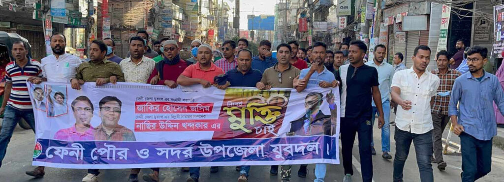 অবরোধের সমর্থনে ফেনীতে যুবদলের মিছিলে