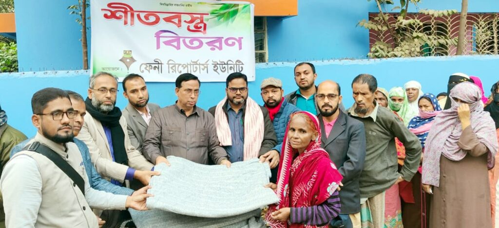 ফেনীতে কর্মরত সাংবাদিকদের সংগঠন ফেনী রিপোর্টার্স ইউনিটির আয়োজনে শহরের পশ্চিম ডাক্তারপাড়া হাজী ইমাম বক্স সড়ক সংলগ্ন মাঠে শীতার্ত নারী পুরুষের মাঝে কম্বল বিতরণ করা হয়েছে। রবিবার বিকালে কম্বল বিতরণ করেন সংগঠনের সভাপতি শুকদেব নাথ তপন, সাবেক সভাপতি মোহাম্মদ শাহাদাত হোসেন, সহ-সভাপতি আলী হায়দার মানিক, সাধারণ সম্পাদক এম এ জাফর, সাবেক সাধারণ সম্পাদক দিদারুল আলম, সাবেক সহ-সাধারণ সম্পাদক ওমর ফারুক, প্রচার সম্পাদক মফিজুর রহমান, সাবেক সাহিত্য ও সাংস্কৃতিক সম্পাদক কিশান মোশাররফ, ক্রীড়া সম্পাদক মোহাম্মদ রফিকুল ইসলাম, সদস্য মুহাম্মদ মিজানুর রহমান। কম্বল বিতরণ কর্মসূচীর সমন্বয় করেন সংগঠনের দপ্তর সম্পাদক আজিজ আল ফয়সাল।