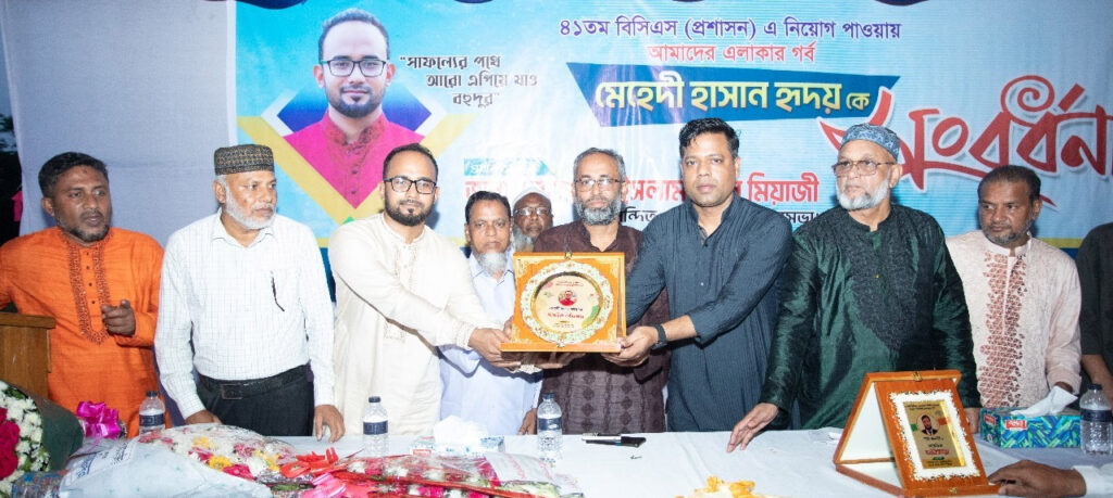 ফেনী শহরের ১৪নং ওয়ার্ড পূর্ব বিজয়সিংহ এলাকায় সওদাগর পাড়া সমাজের উদ্যোগে বিসিএস প্রশাসন ও শিক্ষা ক্যাডারে উত্তীর্ণ দুই কৃতি সন্তান মেহেদী হাসান হৃদয় ও মো: শাহআলমকে সংবর্ধণা প্রদান করা হয়েছে। শনিবার বিকালে বাইতুস সোবহান জামে মসজিদ প্রাঙ্গণে এ উপলক্ষ্যে আয়োজিত অনুষ্ঠানে প্রধান অতিথি ছিলেন পৌরসভার মেয়র নজরুল ইসলাম স্বপন মিয়াজী। মেহেদী-সাঈদী বিদ্যানিকেতনের প্রধান শিক্ষক শাহজাহানের সভাপতিত্বে বিশেষ অতিথি ছিলেন দৈনিক ফেনীর সময় সম্পাদক মোহাম্মদ শাহাদাত হোসেন, ১৪নং ওয়ার্ড কাউন্সিলর নুরুল আলম দিদার, ১৩নং ওয়ার্ড কাউন্সিলর নাসির উদ্দিন খান।