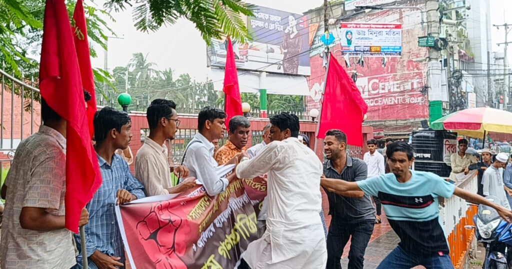প্রত্যক্ষদর্শীরা জানায়, কোটা সংস্কারের দাবীতে ঢাকা বিশ^বিদ্যালয়ে বৈষম্য বিরোধী আন্দোলনকারী সাধারণ শিক্ষার্থীদের উপর হামলাকারীদের বিচার দাবীতে দুপুর ১টার দিকে শহীদ মিনারের সামনে মানববন্ধন করে বাম গণতান্ত্রিক জোট। মানববন্ধনে বক্তব্য রাখেন বাসদ মার্কসবাদী দলের আহবায়ক জসিম উদ্দিন, সদস্য নয়ন পাশা, বৈষম্য বিরোধী ছাত্র আন্দোলনের সমন্বয়ক নাজনিন সুলতানা, সংগঠক মোবারক জামশেদ, নারী মুক্তি কেন্দ্রের সদস্য সুফিয়া আক্তার ডলি, সংগঠক রায়হানে কুৃমুর প্রমুখ। বক্তব্য চলাকালে মুক্তিযোদ্ধা সন্তান সংসদ কমান্ডের জেলা সভাপতি মফিজ উদ্দিন মুন্না ও সাধারণ সম্পাদক মহসিন পাটোয়ারী, ফেনী সরকারি কলেজ ছাত্রলীগের যুগ্ম-সম্পাদক আমজাদ হোসেনের নেতৃত্বে ১৫-১৬ জন যুবক মানববন্ধনে হামলা চালিয়ে ব্যানার কেড়ে নেয়। হাতাহাতির একপর্যায়ে মানববন্ধনকারীদের মারধর করা হয়। এসময় পুলিশ সদস্যরা হামলাকারীদের নিবৃত্ত করে।