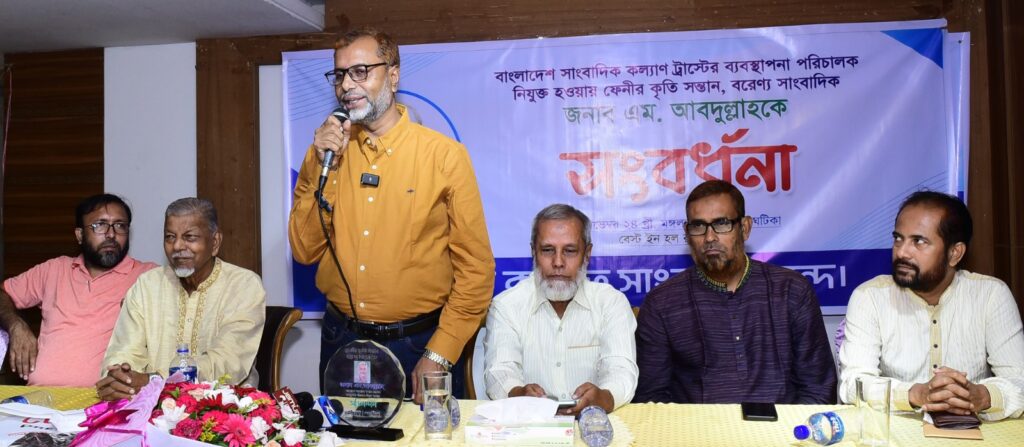 ফেনীতে সাংবাদিক কল্যাণ ট্রাস্টের এমডি এম. আবদুল্লাহকে সংবর্ধনা