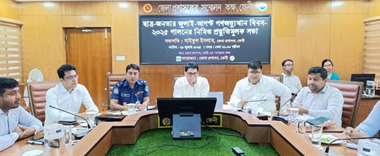 ৫ আগস্ট গনঅভ্যুত্থান দিবস উদযাপন উপলক্ষে ফেনীতে ব্যাপক প্রস্তুতি গ্রহণ করছে জেলা প্রশাসন। গতকাল মঙ্গলবার দুপুরে এ উপলক্ষে প্রস্তুতি সভা জেলা প্রশাসকের সম্মেলন কক্ষে অনুষ্ঠিত হয়। সভায় সভাপতিত্ব করেন জেলা প্রশাসক সাইফুল ইসলাম। অতিরিক্ত জেলা প্রশাসক (সার্বিক) মো: ইসমাইল হোসেনের সঞ্চালনায় বক্তব্য রাখেন পুলিশ সুপার মো: হাবিবুর রহমান, সিভিল সার্জন ডা. রুবাইয়াত বিন করিম, স্থানীয় সরকার বিভাগের উপ-পরিচালক গোলাম মোহাম্মদ বাতেন প্রমূখ।