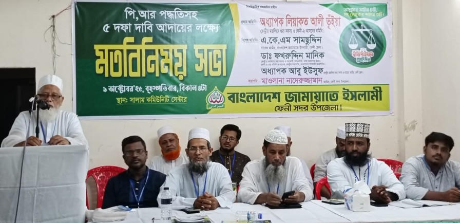 পিআর পদ্ধতিসহ পাঁচ দফা দাবীতে ফেনীতে মতবিনিময় সভা করেছে জামায়াতে ইসলামী। সদর উপজেলা শাখার আয়োজনে উপজেলা আমীর মাওলানা নাদেরুজ্জামানের সভাপতিত্বে শহরের সালাম কমিউনিটি সেন্টারে মতবিনিময় সভায় প্রধান অতিথি ছিলেন কেন্দ্রীয় মজলিসে শূরা সদস্য অধ্যাপক লিয়াকত আলী ভুঁইয়া।