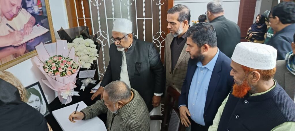 মঙ্গলবার রাতে রাজধানীর গুলশান বিএনপির দলীয় কার্যালয়ে খালেদা জিয়ার মৃত্যুতে শোক প্রকাশ জানাতে উপস্থিত হয়ে তিনি এসব কথা বলেন। এ সময় উপস্থিত ছিলেন বিএনপির মহাসচিব মির্জা ফখরুল ইসলাম আলমগীর, যুগ্ম মহাসচিব শহীদ উদ্দিন চৌধুরী এনী, জামায়াতের কেন্দ্রীয় সহকারী সেক্রেটারি জেনারেল আবুল হাসানাত মোঃ আবদুল হালিম, এহসানুল মাহবুব জোবায়ের, জামায়াত নেতা ডাঃ খালেকুজ্জামানসহ বিভিন্ন পর্যায়ের নেতৃবৃন্দ। এ সময় ডা: তাহের জামায়াতের পক্ষ থেকে শোক জানিয়ে খালেদা জিয়ার শোক বইতে স্বাক্ষর করেন।