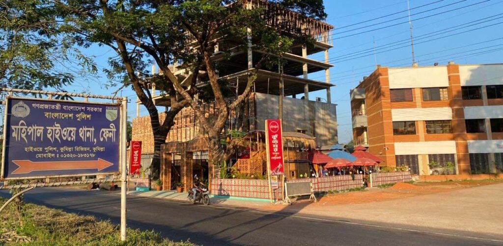 সরেজমিনে দেখা গেছে, মহাসড়ক থেকে নিরাপদ দূরত্বে নির্মাণ করা হয় তিন তলা বিশিষ্ট মহিপাল হাইওয়ে থানা ভবন। ওই ভবন আর মহাসড়কের মাঝামাঝি স্থানে রেষ্টুরেন্ট নির্মাণ করেন ফেনী জেলা কাভার্ডভ্যান, ট্রাক-মিনিট্রাক শ্রমিক ইউনিয়নের নেতা মোহাম্মদ আলী। তবে সেটি দেখভালের দায়িত্বে রয়েছেন তার ছেলে মুন্না।