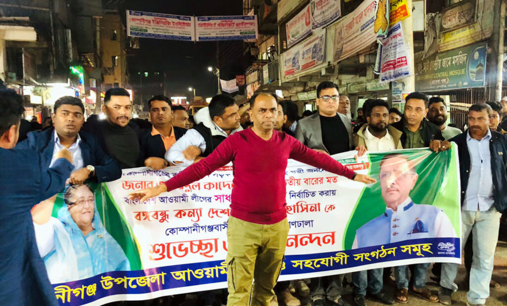 সড়ক পরিবহন ও সেতুমন্ত্রী ওবায়দুল কাদের তৃতীয় মেয়াদে বাংলাদেশ আওয়ামী লীগের সাধারণ সম্পাদক নির্বাচিত হওয়ায় তার নিজ নির্বাচনী এলাকা নোয়াখালীর কোম্পানীগঞ্জ উপজেলায় আনন্দ মিছিল করেছে আওয়ামী লীগ। এ সময় নেতাকর্মীদেরকে পরস্পর পরস্পরের মধ্যে মিষ্টি বিতরণ করতে দেখা গেছে।